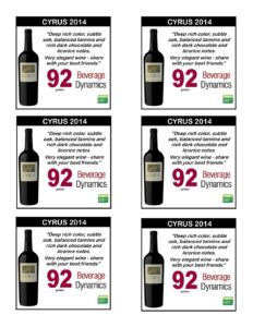 AVV 2014 CYRUS 92 points Beverage Dynamics shelf talkers