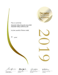 AVV 2014 CYRUS 97 Points Decanter Wine Awards