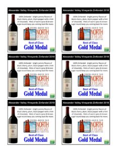 AVV 2018 Zinfandel Bestof Class NOG Shelf talker for AVV 2018 Zinfandel. Best of Class from North of the Gate Wine Competition. 6 copies of image.