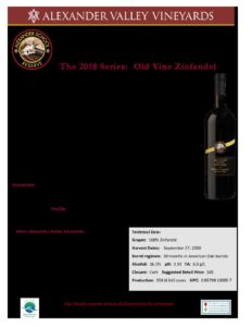 AVV ASR Old Vine Zinfandel 2018 fact sheet
