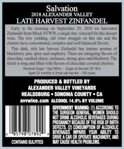 AVV Salvation Zin 2018 Back Label