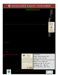 AVV Cabernet Sauvignon 2019 fact sheet organically grown