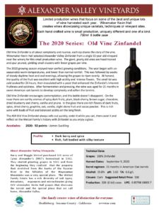 AVV ASR Old Vine Zinfandel 2020 fact sheet