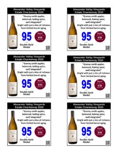 AVV_Chardonnay_2020_95_pt_Sunset_Intl_Wine_Competition Page of six identical shelftalkers for AVV Chardonnay 2020 95 points Sunset International Wine Competition