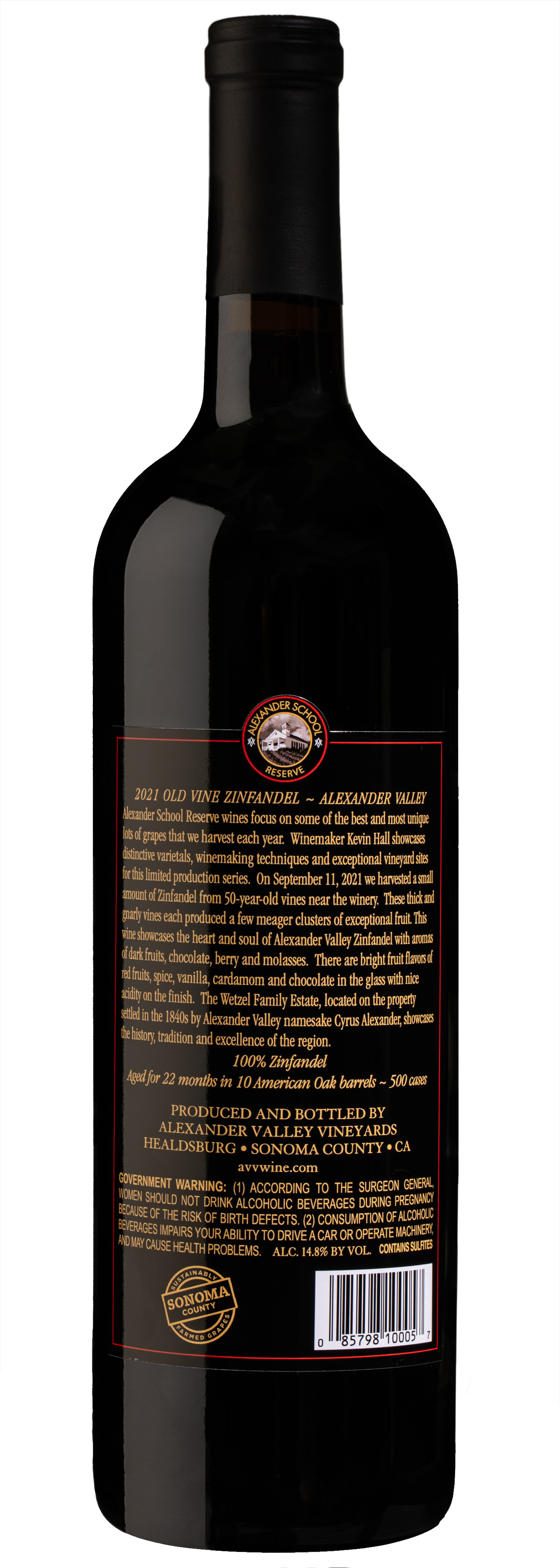 2021 AVV ASR Old Vine Zinfandel 750ml back bottle shot 2021 AVV ASR Old Vine Zinfandel 750ml back bottle shot