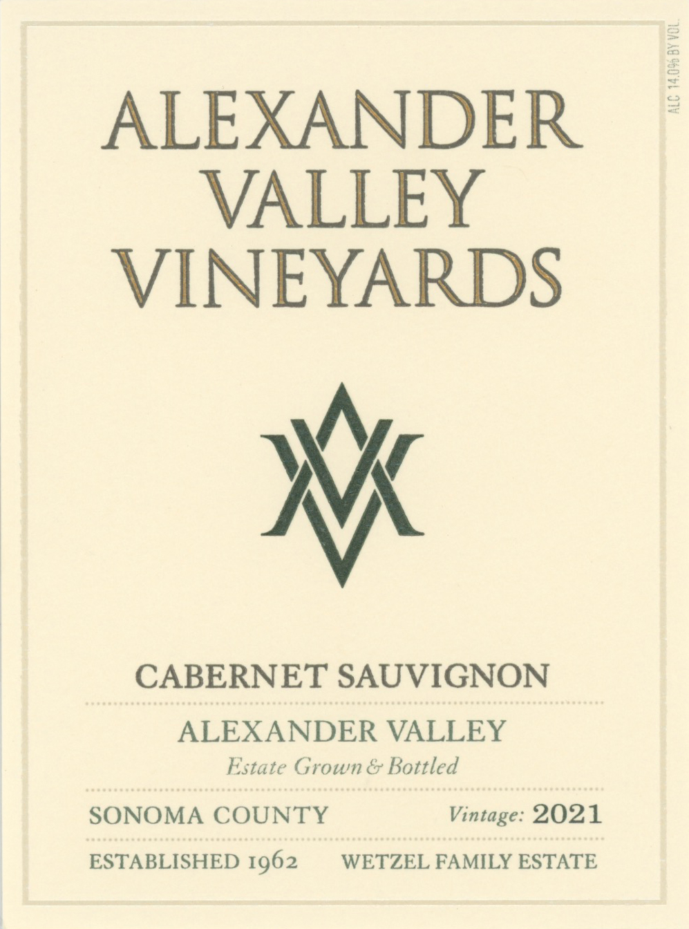 AVV 2021 Cabernet Sauvignon organically grown front label AVV 2021 Cabernet Sauvignon organically grown front label