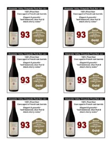 6 Identical images of AVV 2021 Pinot Noir 93 points Sunset