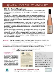 AVV Dry Rose’ of Sangiovese 2021 fact sheet