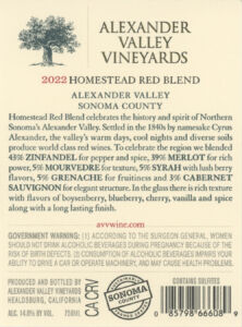AVV Homestead Red Blend 2022 back label
