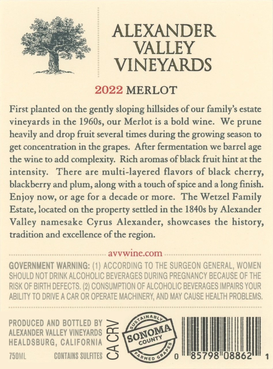 AVV Merlot 2022 750ml back label PS