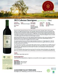 AVV 2022 Cabernet Sauvignon organically grown 750ml Fact Sheet