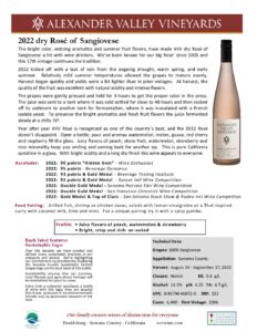 AVV Dry Rose’ of Sangiovese 2022 fact sheet