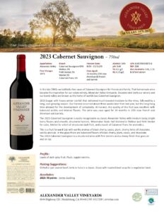 AVV 2023 Cabernet Sauvignon 750ml Fact Sheet